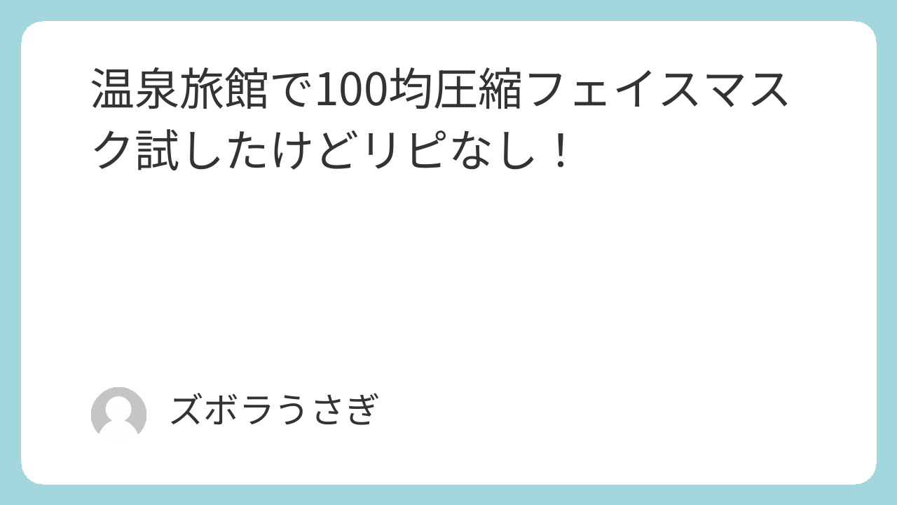 100均の圧縮フェイスマスク+旅館のアメニティの化粧水